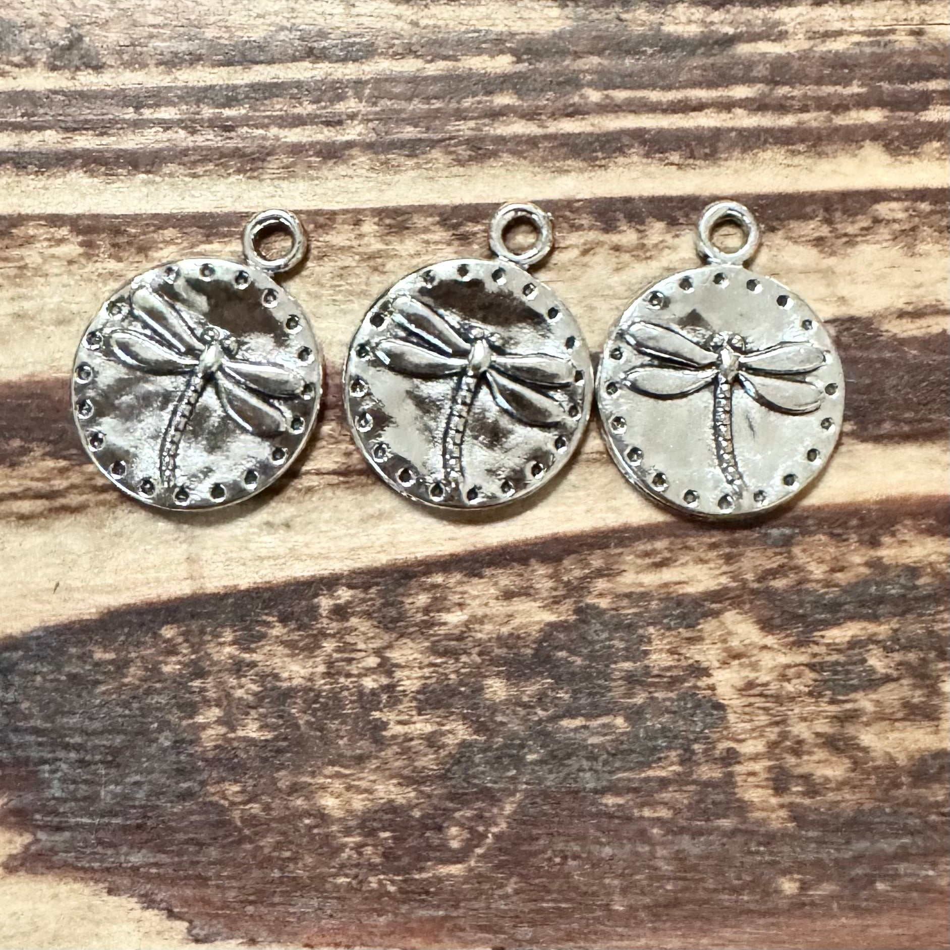 BCB-1124 - Antique Silver Dragonfly Disc Charm, 15mm | Pkg 3