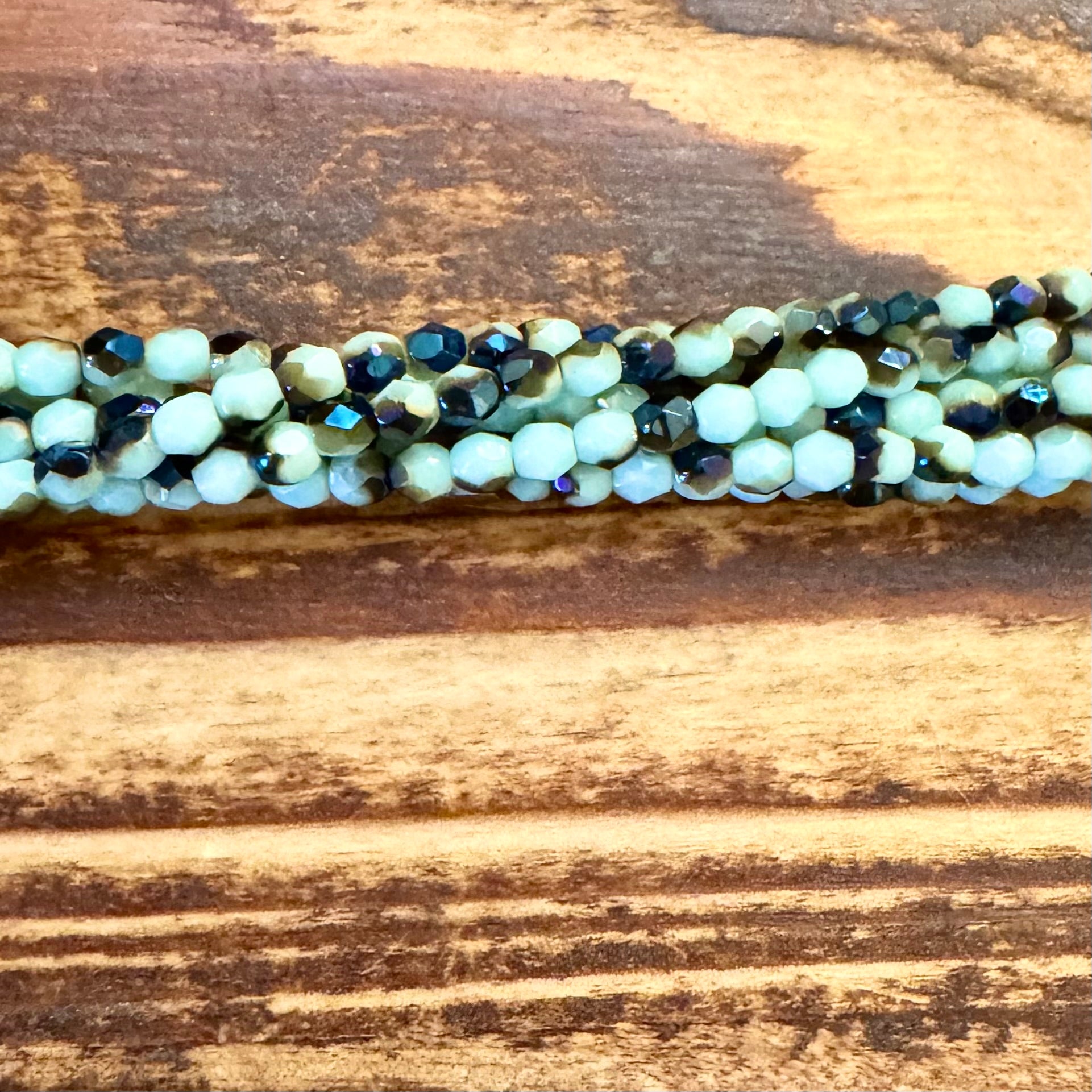 1-03-MI63100 - Czech Fire Polish Beads, Blue Iris Opaque Pale Turquoise, 3mm | Strand