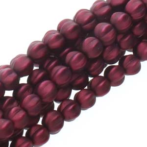 PRLM06-17965M - Melon Czech Glass Pearls, Matt Burgandy, 6mm | 1 Strand