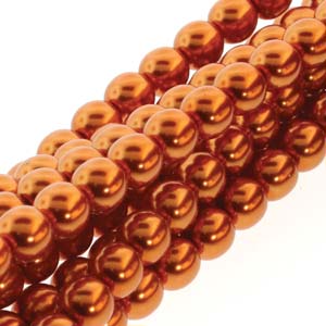 PRL04-70085 - 4mm Round Glass Pearls Burnt Orange-120 Beads per strand | 1 Strand. Imported from Czech Republic and manufactured with traditional pressed glass techniques.
