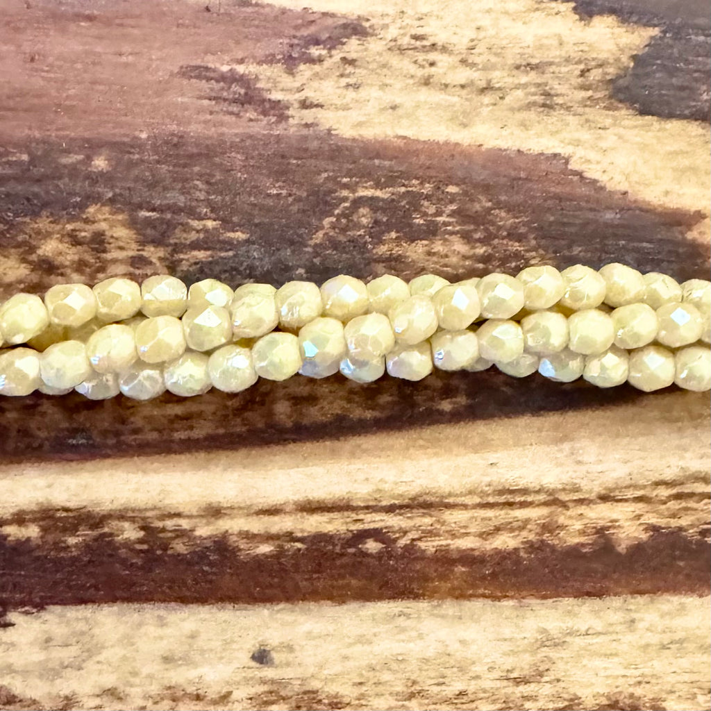 1-03-LR13060 - Czech Fire Polish Beads, Luster Iris Antique Beige, 3mm | Strand