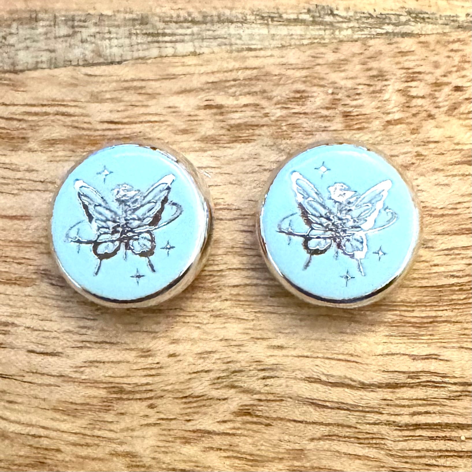 BCB-0703 - Acrylic Disc Focal Beads With Butterfly, Sky Blue, 2.5x18mm | Pkg 2