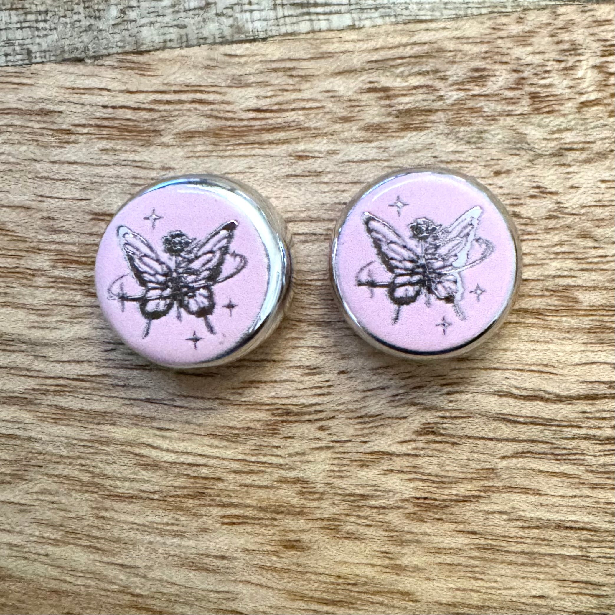 BCB-2178 - Acrylic Disc Focal Beads With Butterfly, Soft Pink, 2.5x18mm | Pkg 2