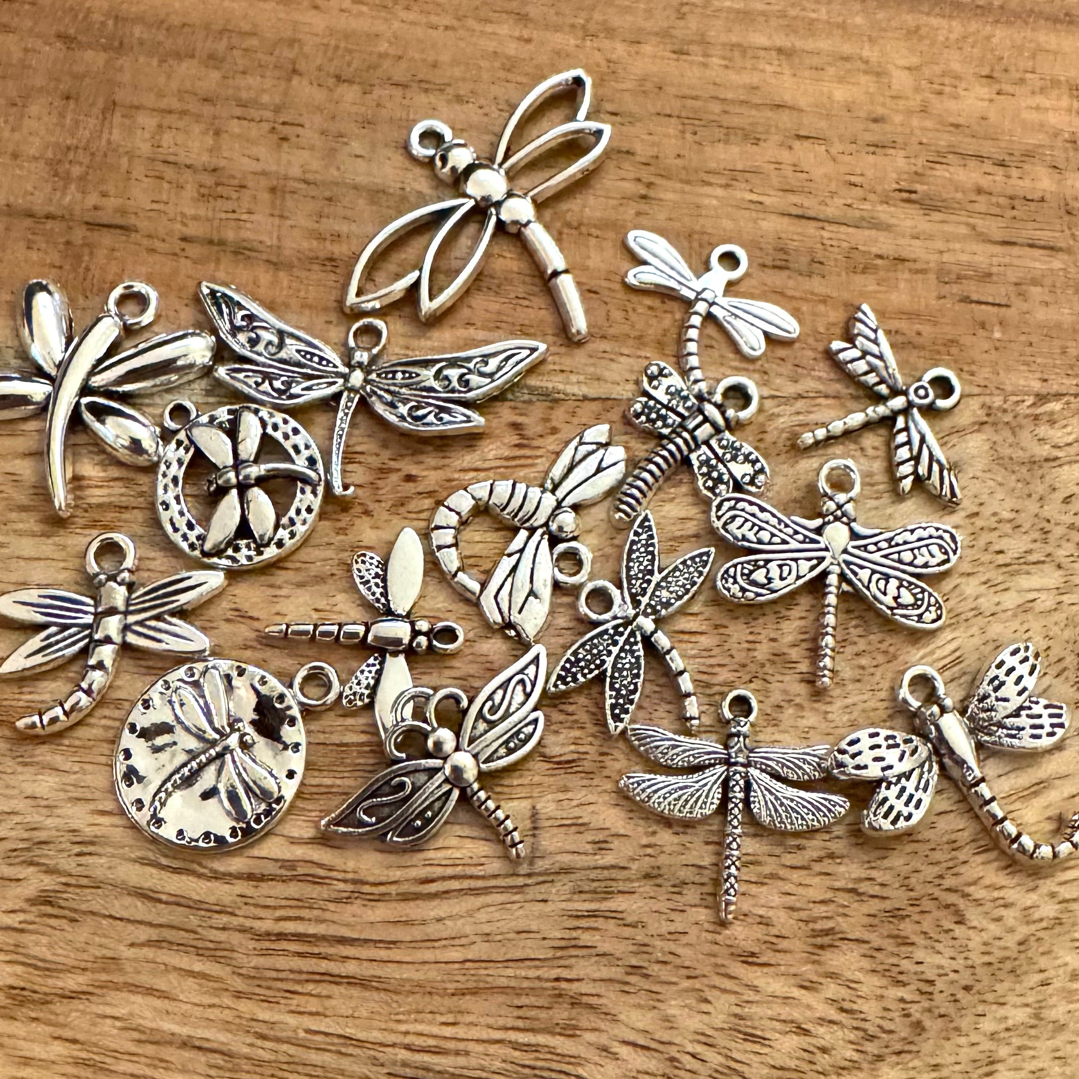 BCB-2268 - Antique Silver Dragonfly Charms | Pkg 16