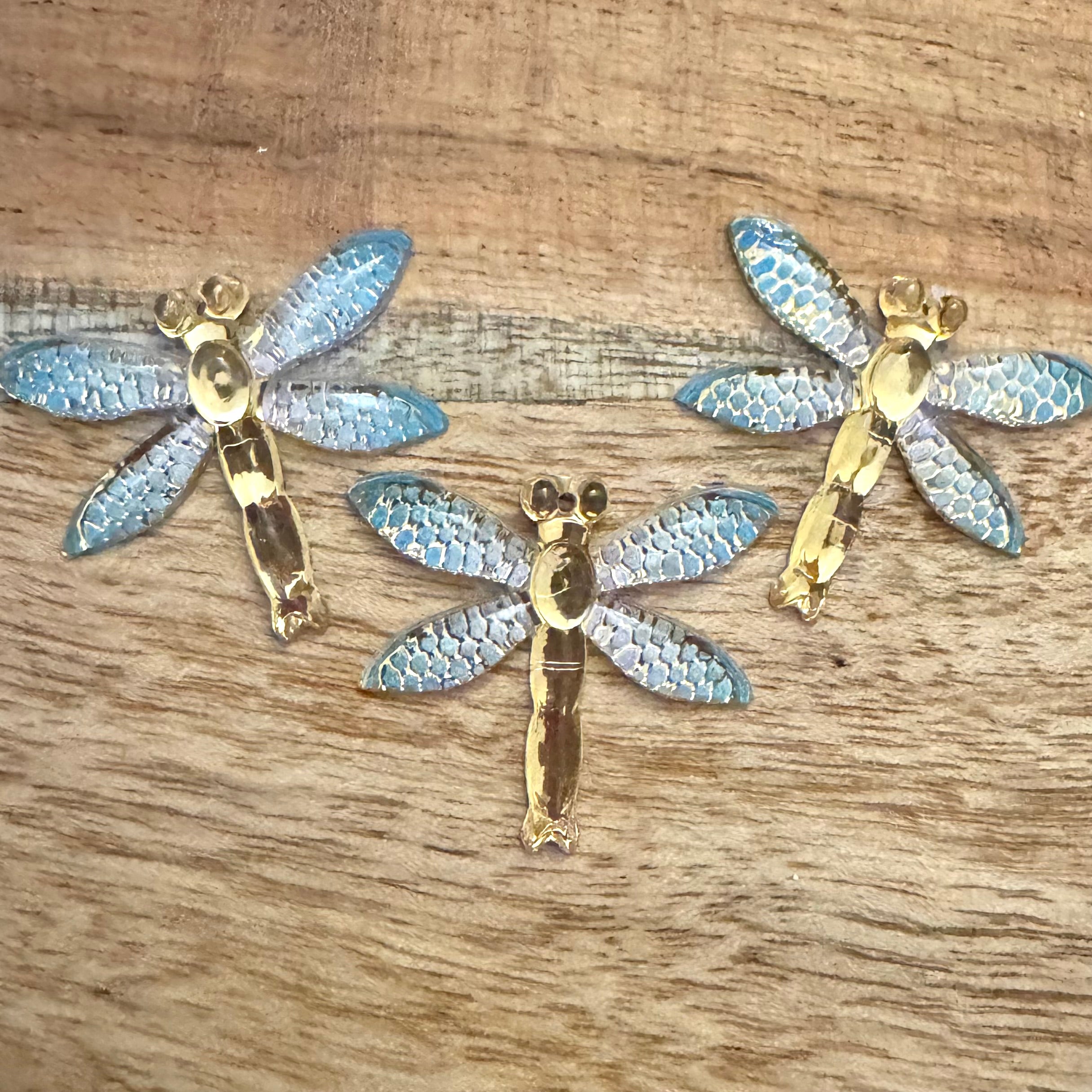 BCB-2175 - Resin Dragonfly Pendant, Gold/Blue, 32x27mm | Pkg 3