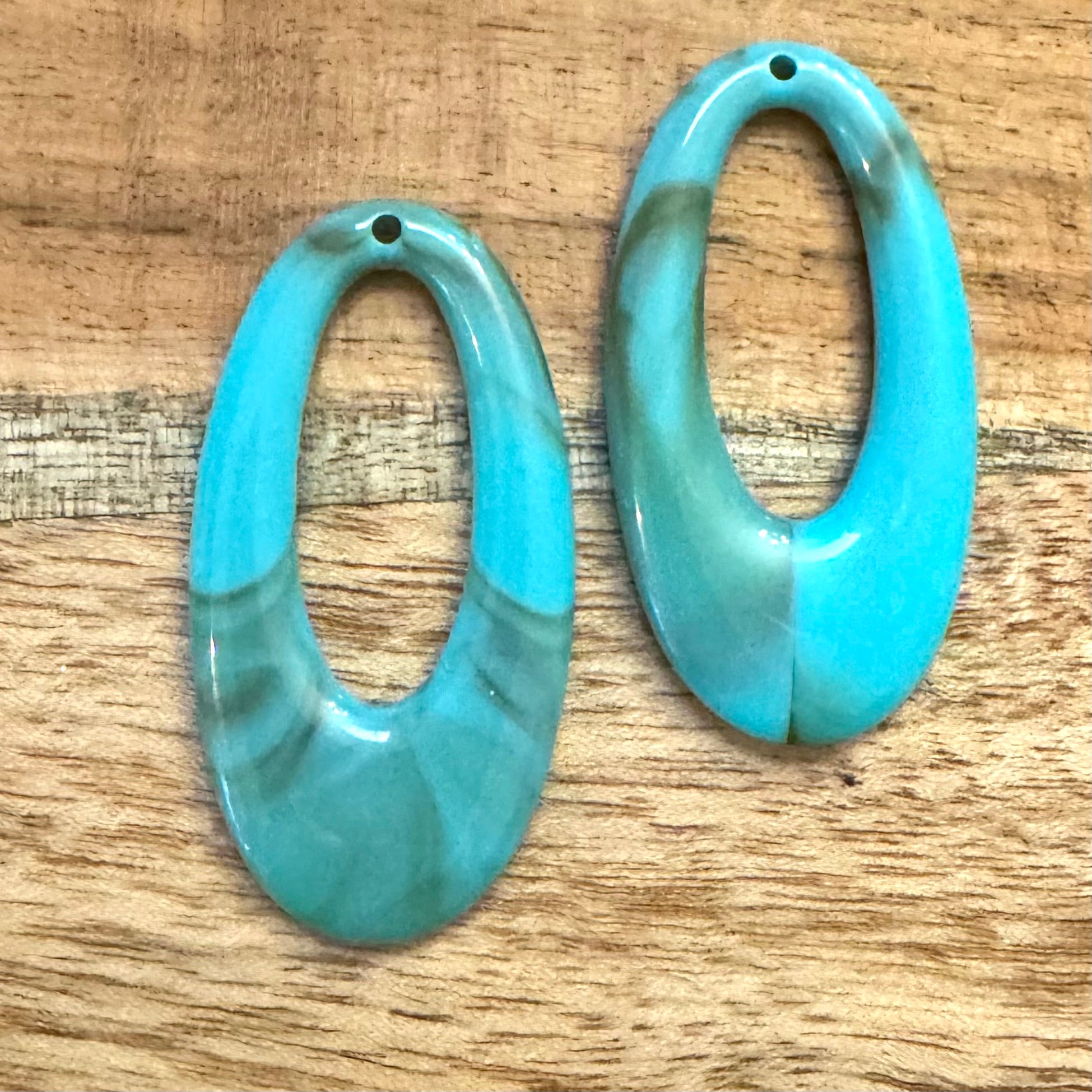 BCB-2192 - Resin Oval Go-Go Pendant, Turquoise Marble, 25x48mm | Pkg 2