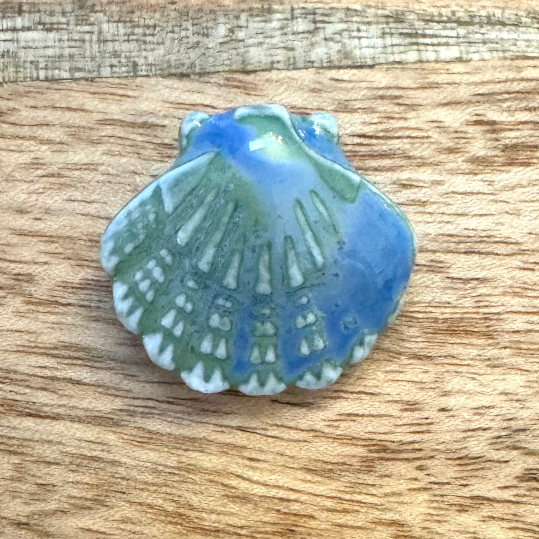 BCB-2195 - Resin Shell Pendant, Blue/Gray/White, 25x28mm | Pkg 1
