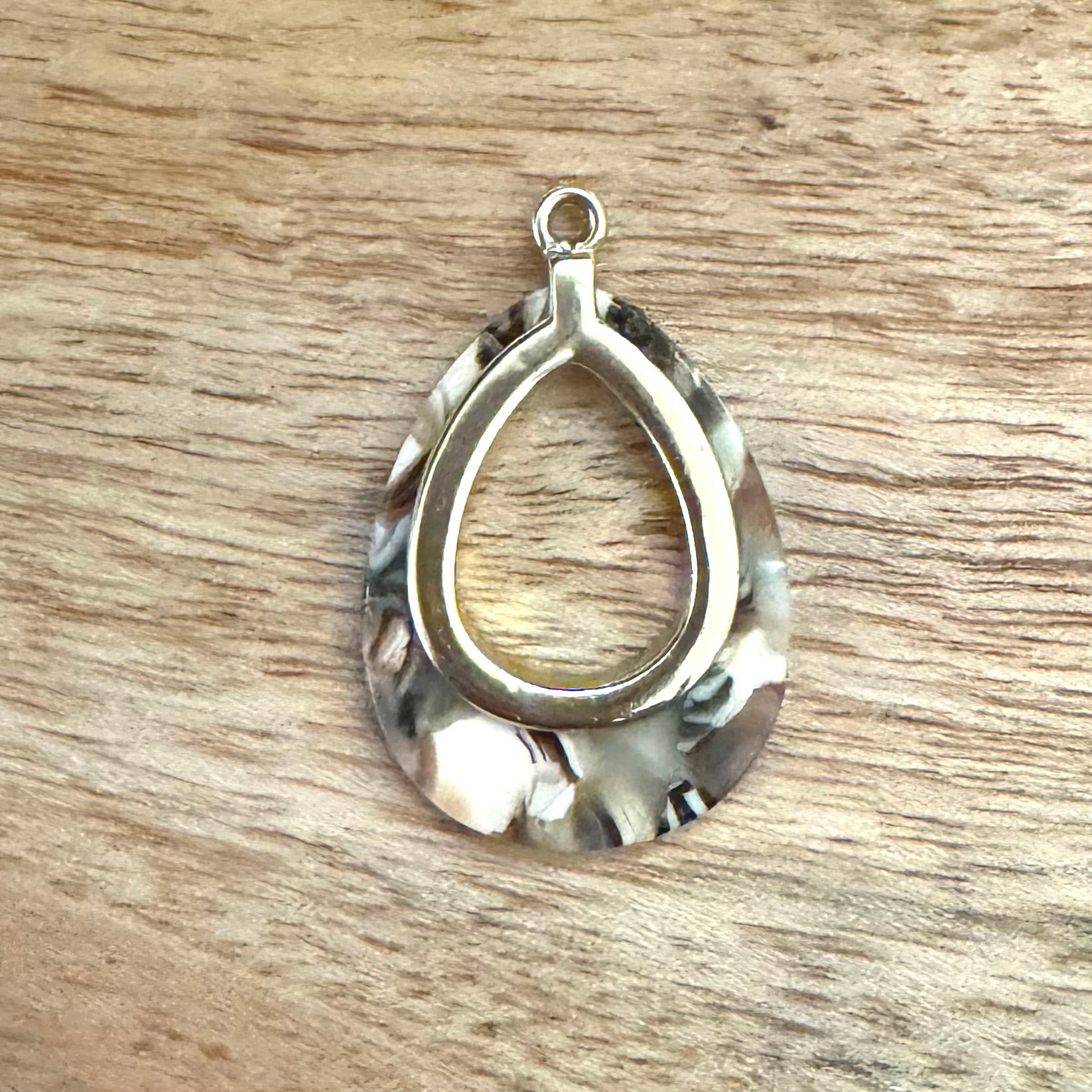 BCB-2200 - Silver Pewter And Resin Donut Pendant, Gray Mosaic, 21x33mm | Pkg 1