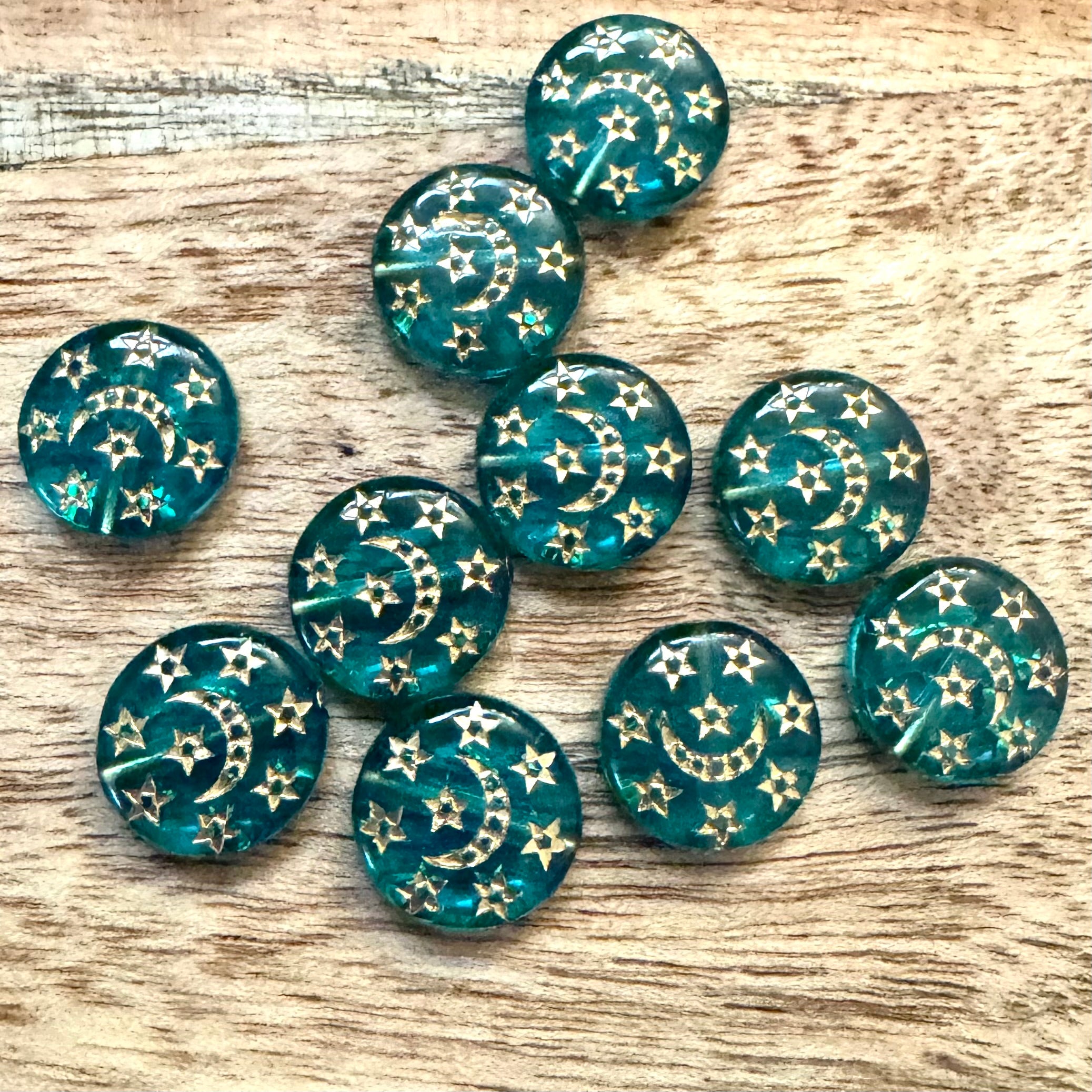 BCB-2230 - Acrylic Disc Beads, Stars And Moon, 12.5mm | Pkg 10