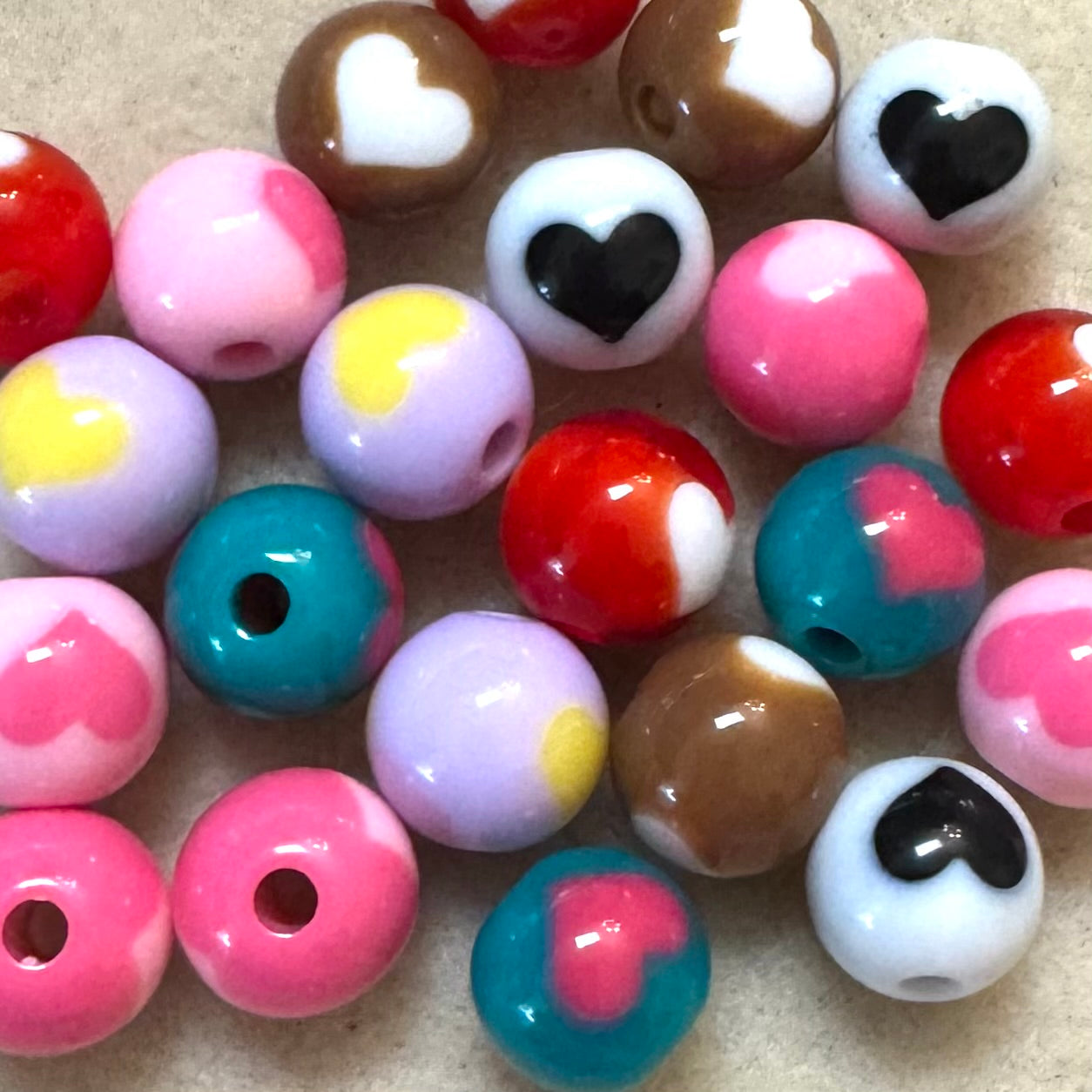 BCB-2244 - Acrylic Round Beads With Heart, Multi, 12mm | Pkg 15