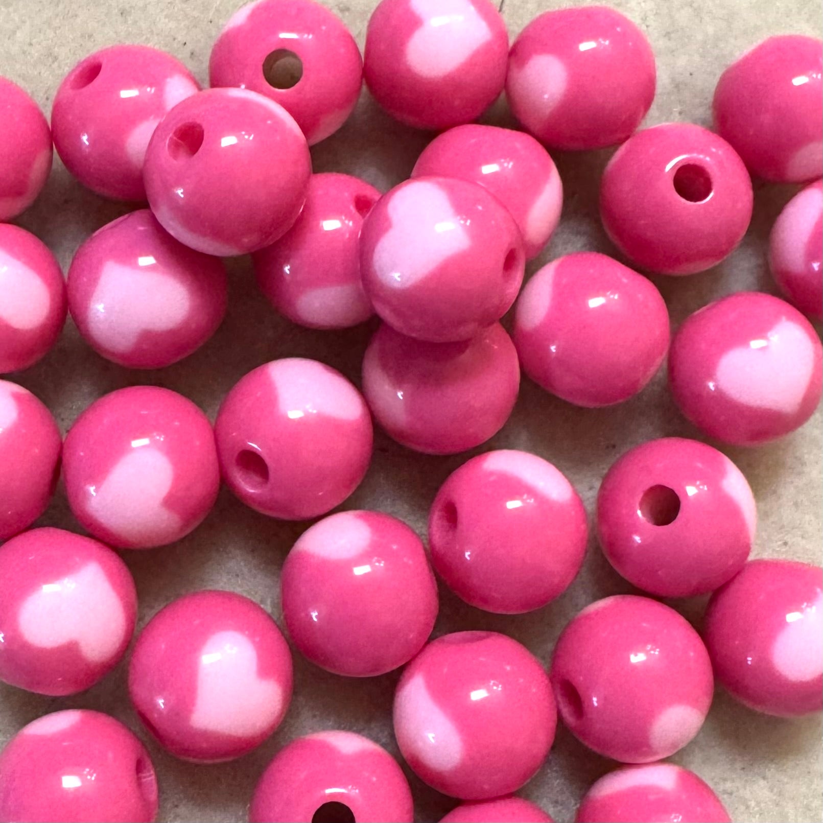BCB-2247 - Acrylic Round Beads With Heart, Pinks, 12mm | Pkg 15