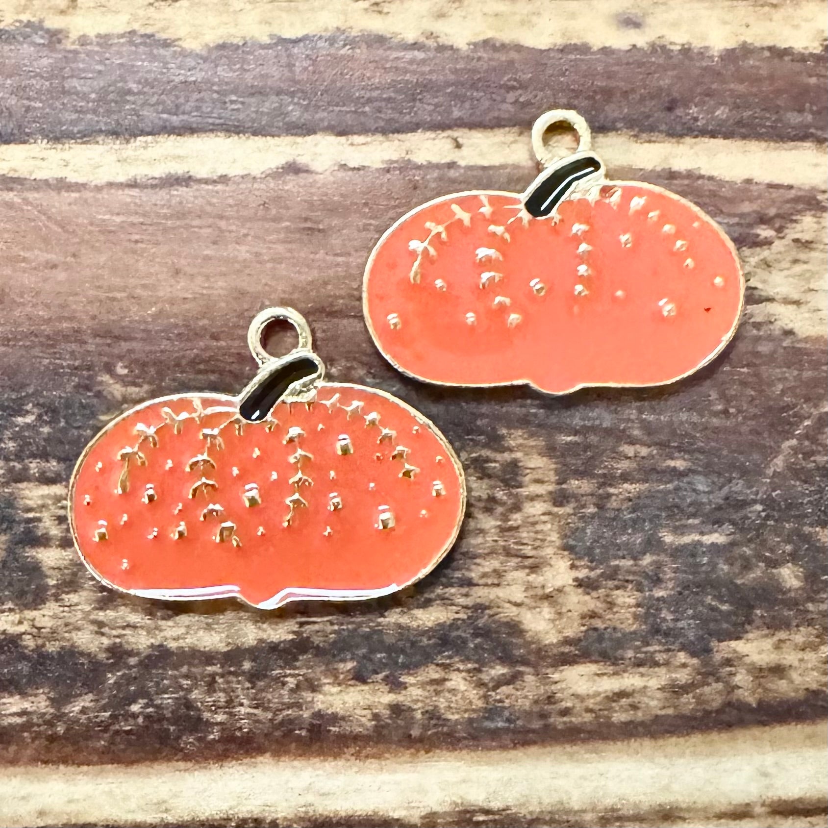 BCB-1131 - Antique Gold Enamel Pendant, Pumpkin With Vines, 22x17mm | Pkg 2