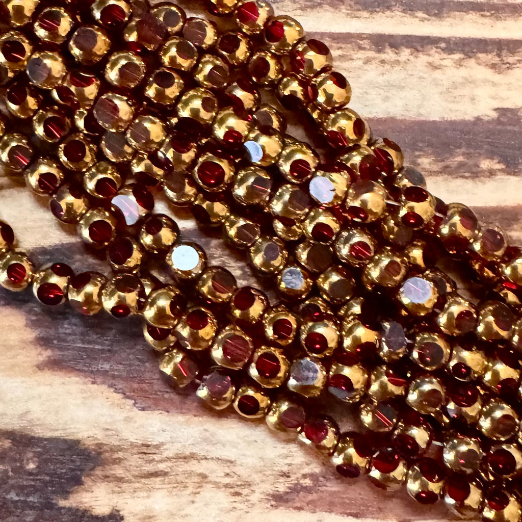 ABA-1203 - Glass Bead Strands, Faceted Red Dot, 4mm | 10 Strands, Un-Knotted