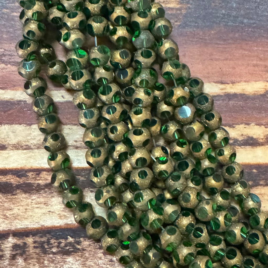ABA-1206 - Glass Bead Strands, Faceted, Emerald Dot, 4mm | 10 Strands, Un-Knotted