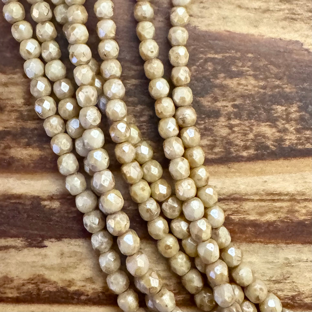 Lot-001 - Czech Glass Fire Polish, Antique Cream, 3mm | Pkg 7 Strands