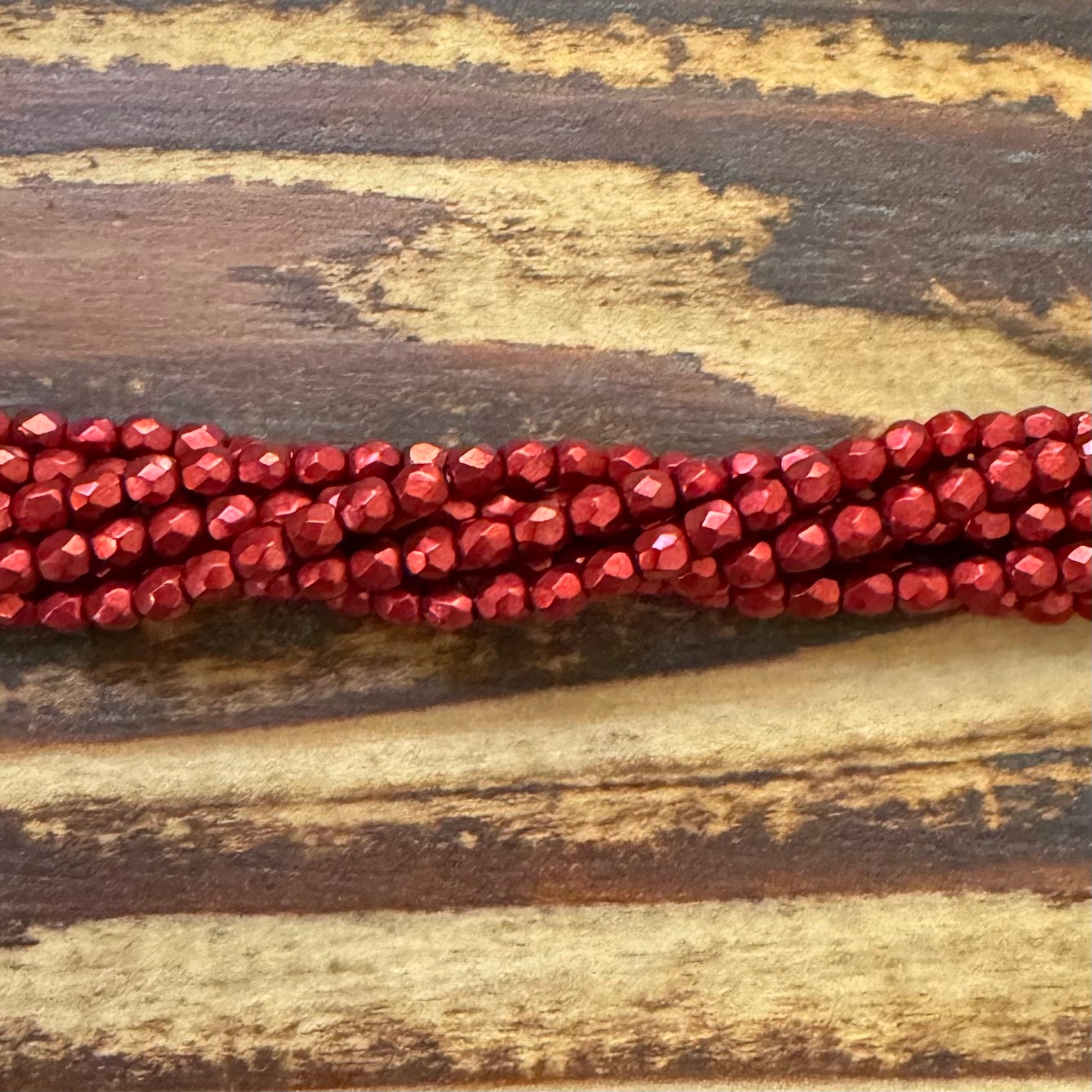 1-03-07B09 - Czech Fire Polish Beads, Saturated Metallic Cranberry, 3mm | Strand