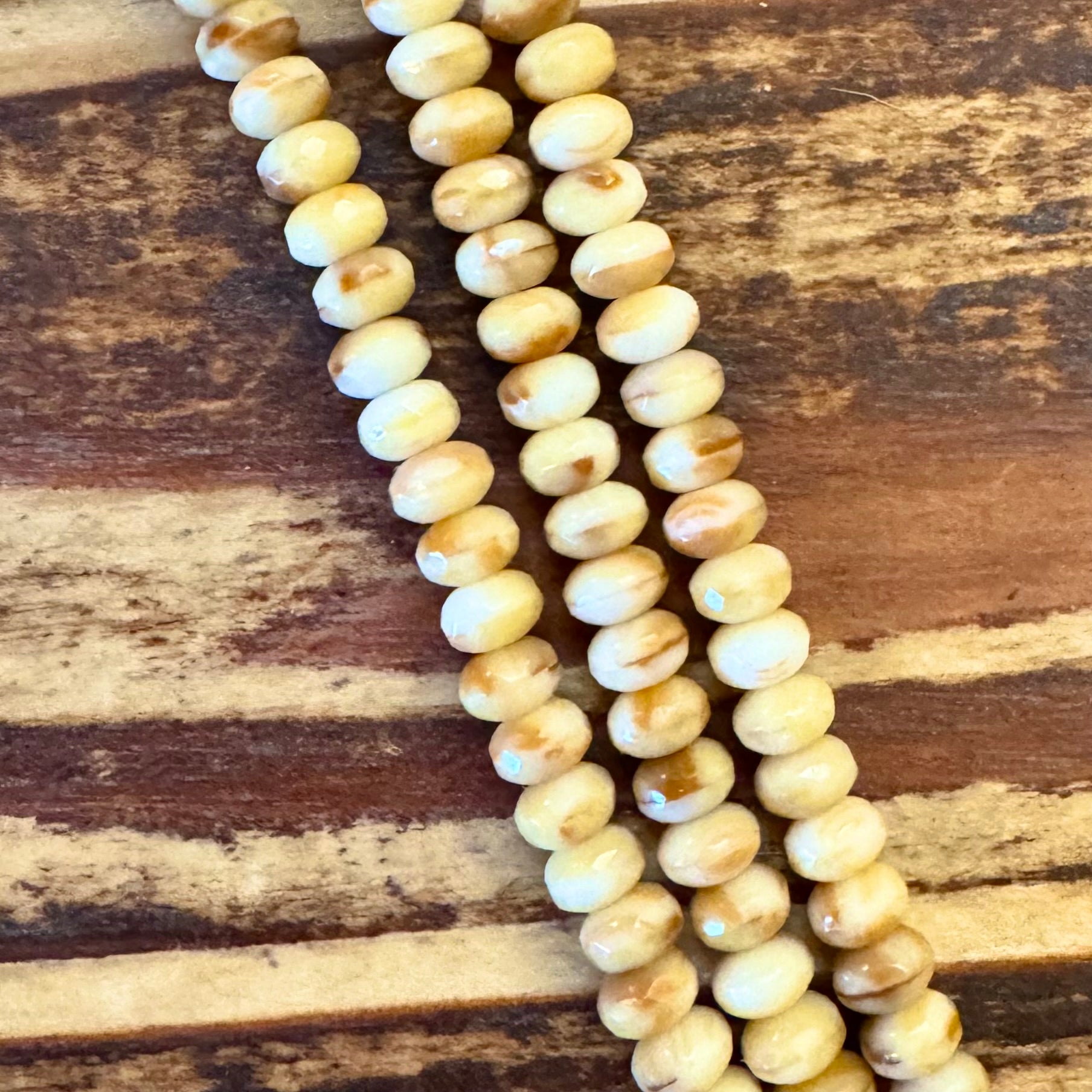 JKB-1053 - Czech Glass Faceted Rondelle Beads, Tan Picasso, 3x5mm | Strand