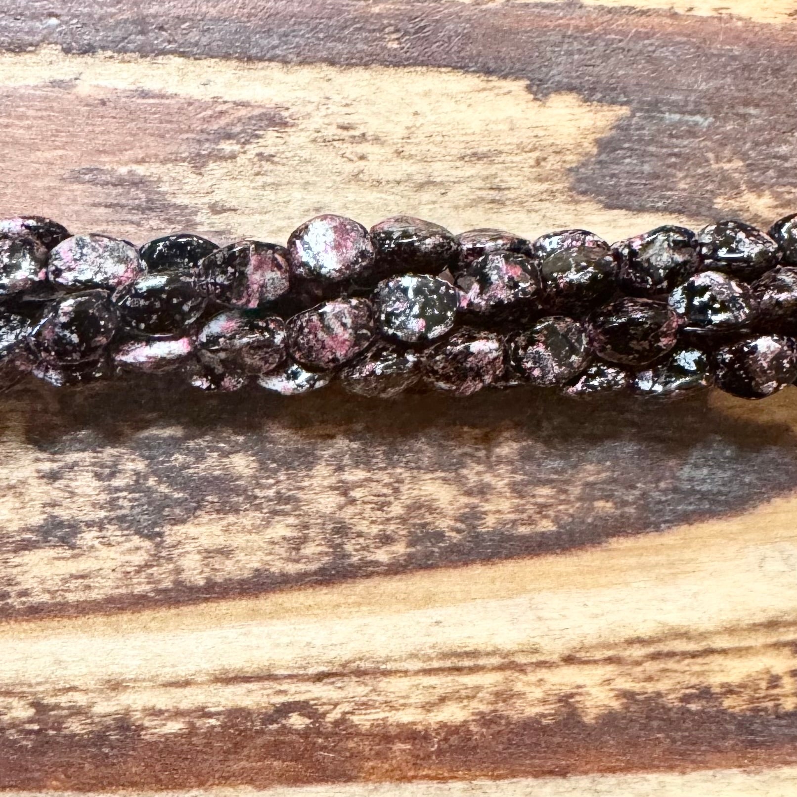 JKB-1083 - Czech Glass Pinch Beads, Jet/Fuchsia, 4x5mm | Strand