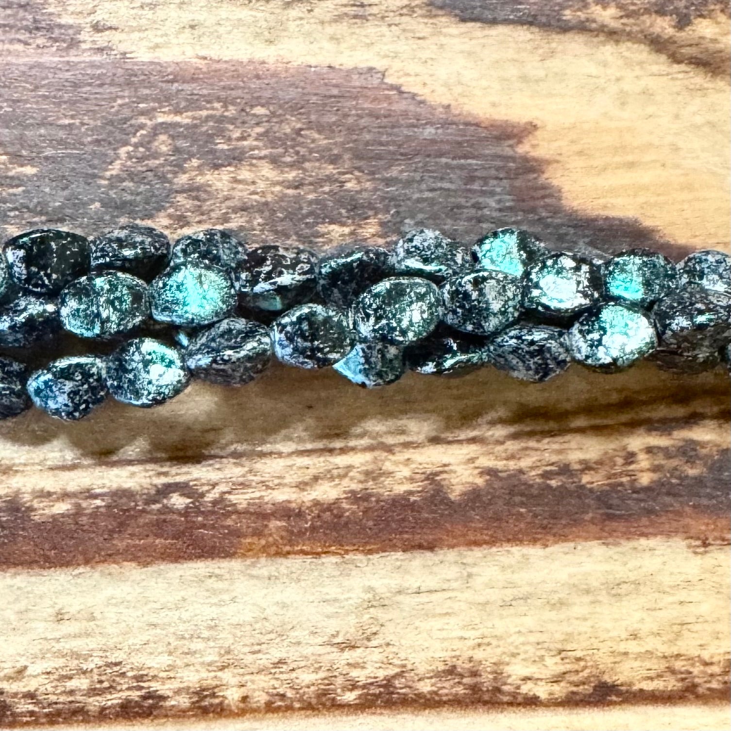JKB-1084 - Czech Glass Pinch Beads, Jet/Green, 4x5mm | Strand