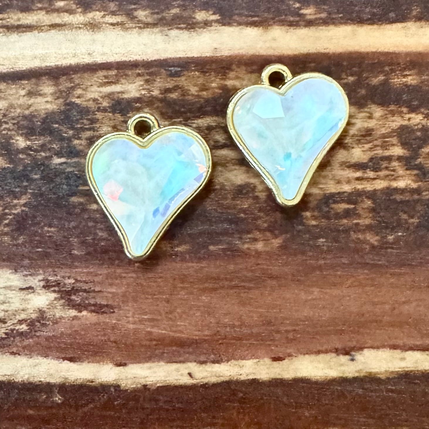 BCB-1610 - Gold Plated Heart Pendant With Opalite Crystal, 15mm | Pkg 2