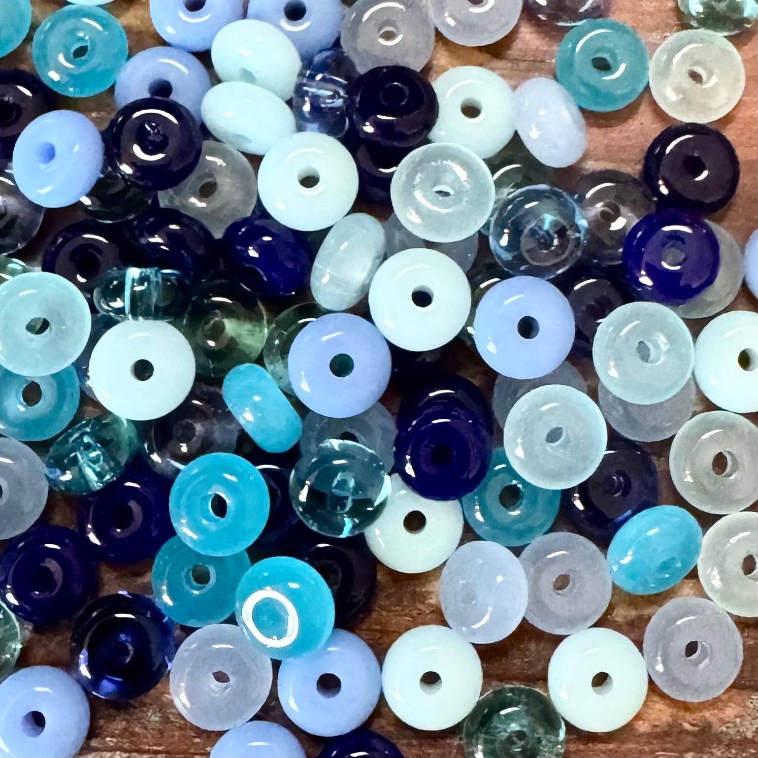 BCB-1665 - Glass Rondelle Beads, The Blues, 3x6mm | Pkg Approx 105 Beads