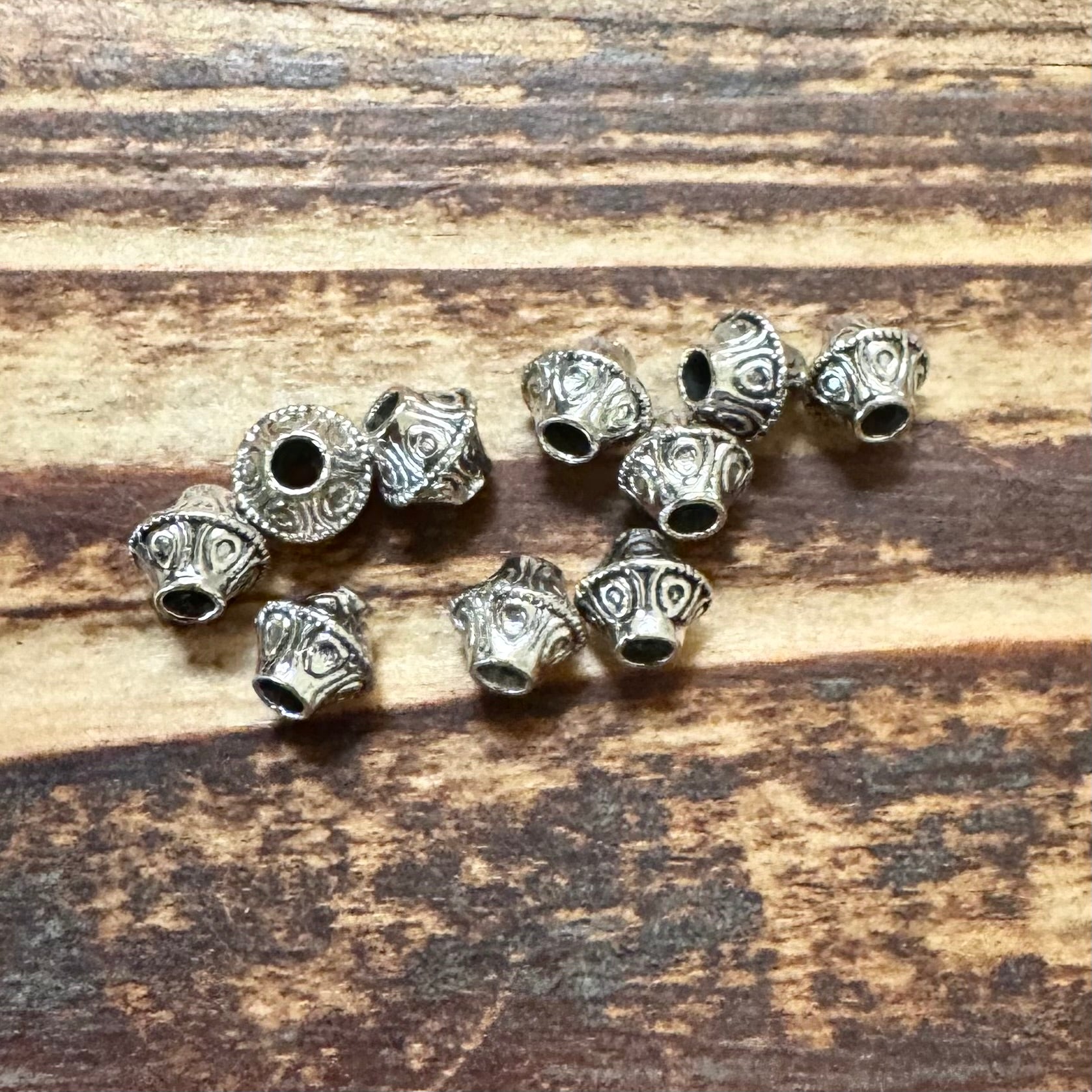 BCB-0992 - Antique Silver Bicone Beads With Swirls, 6mm | Pkg 10
