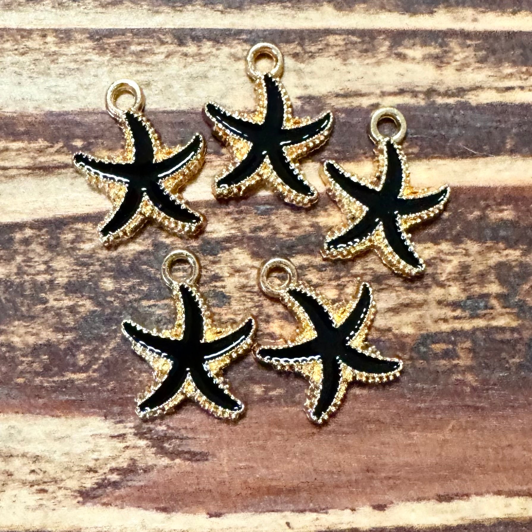 BCB-1348 - Gold Enamel Starfish Charms, Jet, 18x15mm | Pkg 5