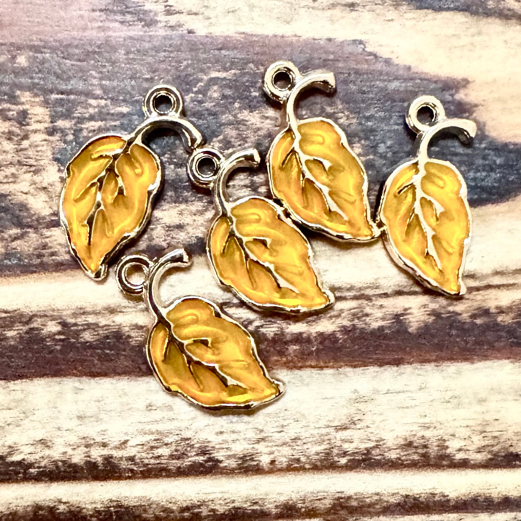 BCB-1166 - Antique Gold Enamel Dripping Leaf, Autumn Yellow, 12x20mm | Pkg 5