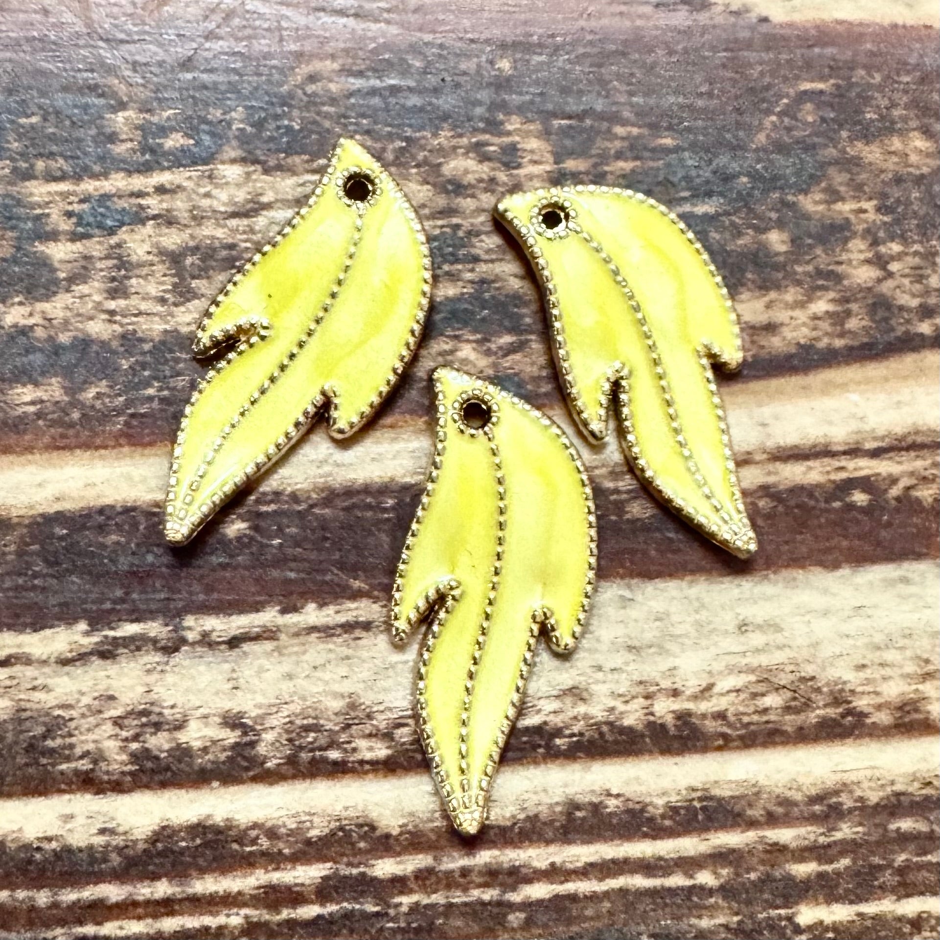 BCB-1167 - Antique Gold Enamel Pendant, Golden Yellow, 11x24mm | Pkg 3