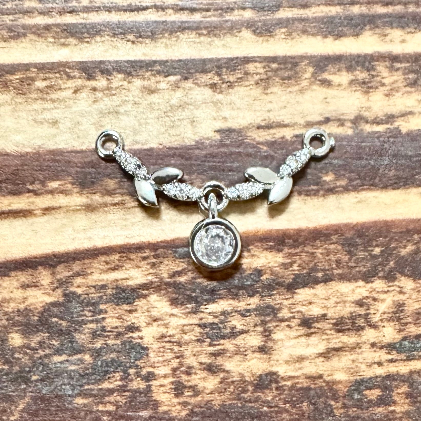 BCB-1242 - Silver Plated Brass Connector With Pave CrystalsAnd Drop, 25x14mm | Pkg 1