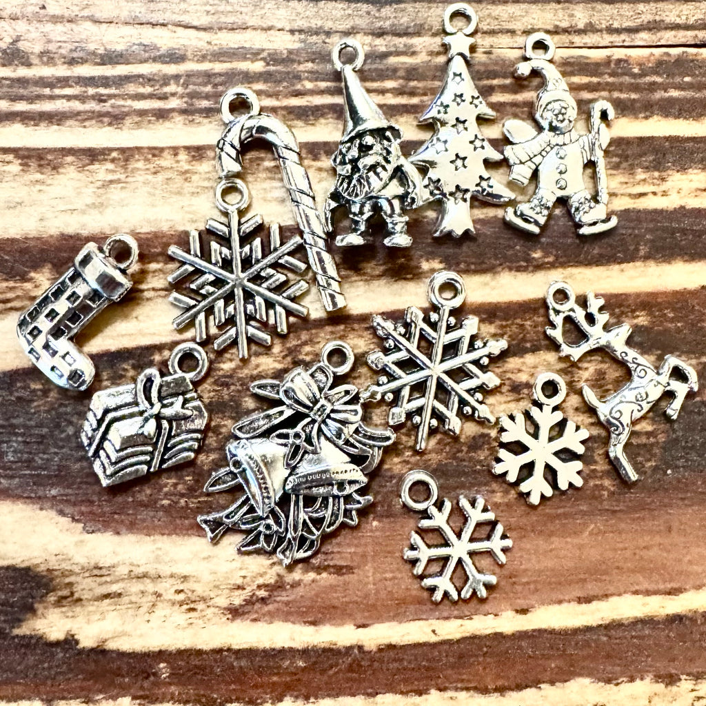 BCB-1265 - Antique Silver Christmas Charms | 12 Pieces