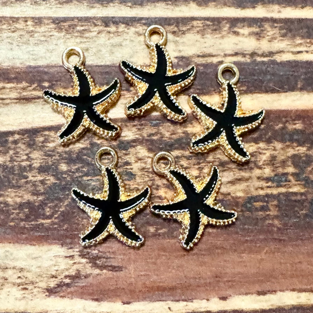 BCB-1348 - Gold Enamel Starfish Charms, Jet, 18x15mm | Pkg 5