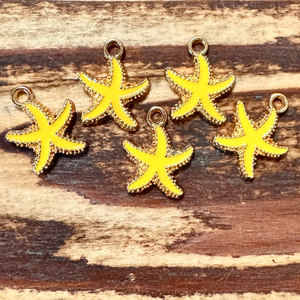 BCB-1350 - Gold Enamel Starfish Charms, Lemon Custard, 18x15mm | Pkg 5