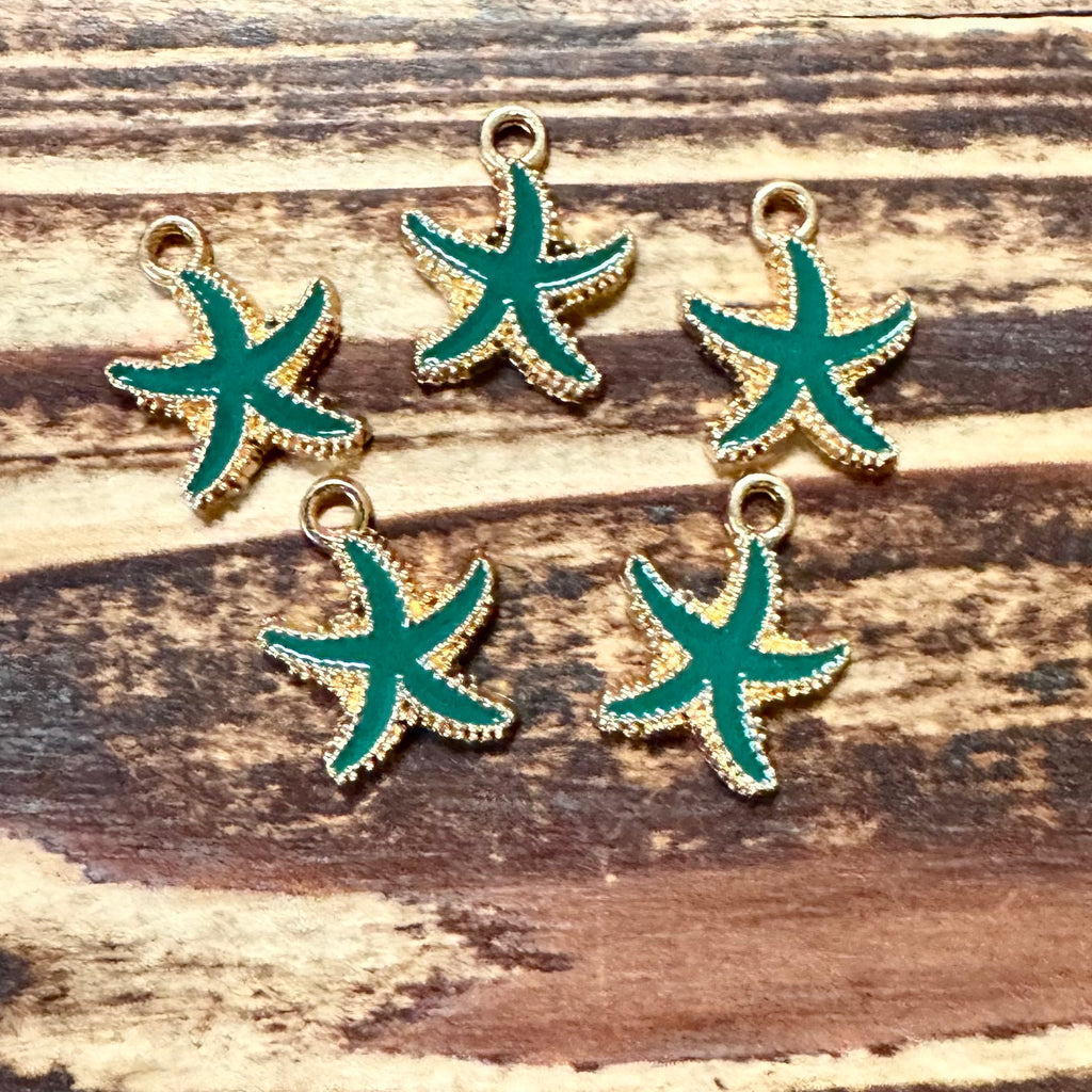 BCB-1352 - Gold Enamel Starfish Charms, Moss Green, 18x15mm | Pkg 5