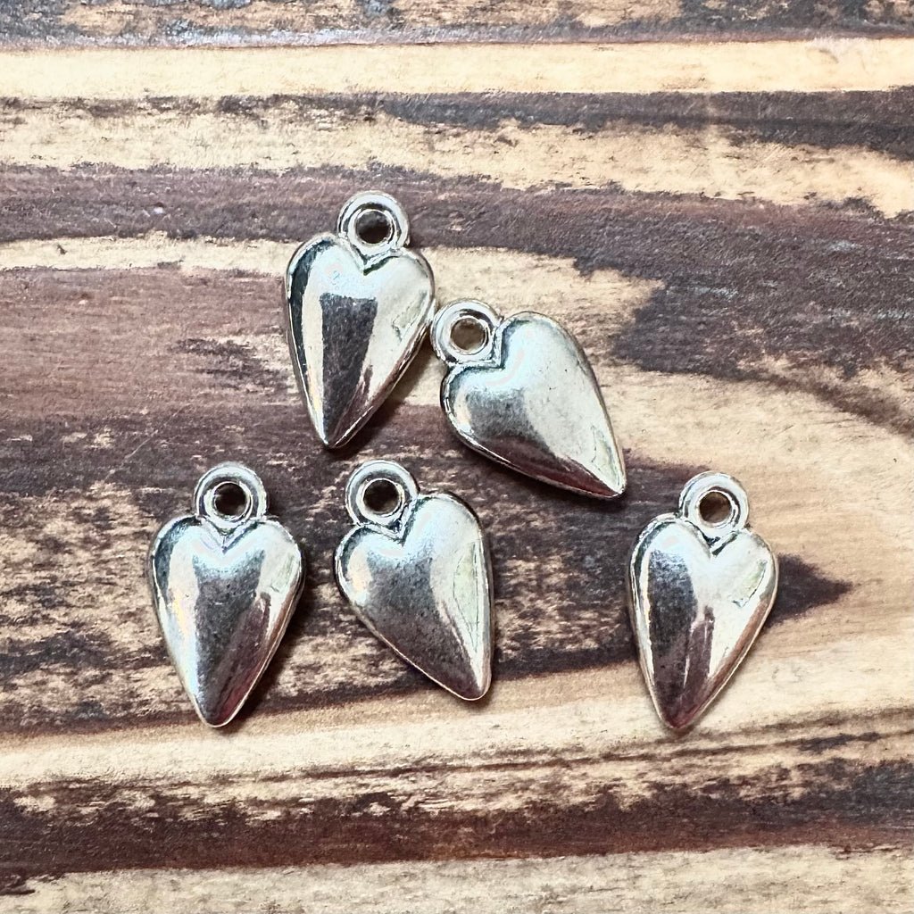 BCB-1440 - Antique Silver Puffy Heart Charms, 10x19mm | Pkg 5