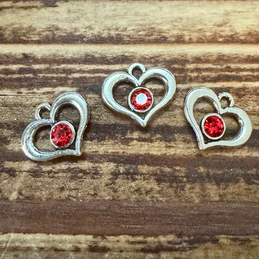 BCB-1476 - Silver Plated Heart Charm With Siam Crystal, 16mm | Pkg 3