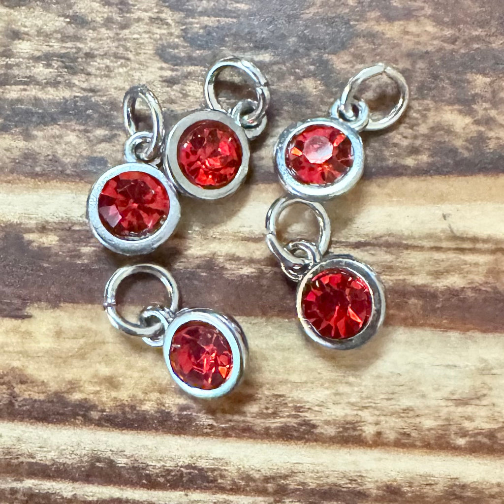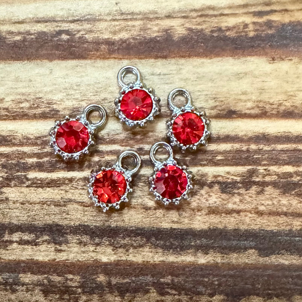BCB-1477 - Silver Plated Charm With Siam Crystal, 10x8mm | Pkg 5