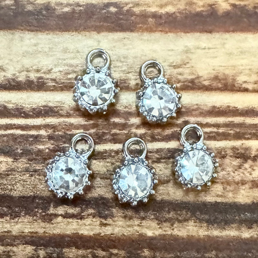 BCB-1478 - Silver Plated Charm With Crystal, 10x8mm | Pkg 5