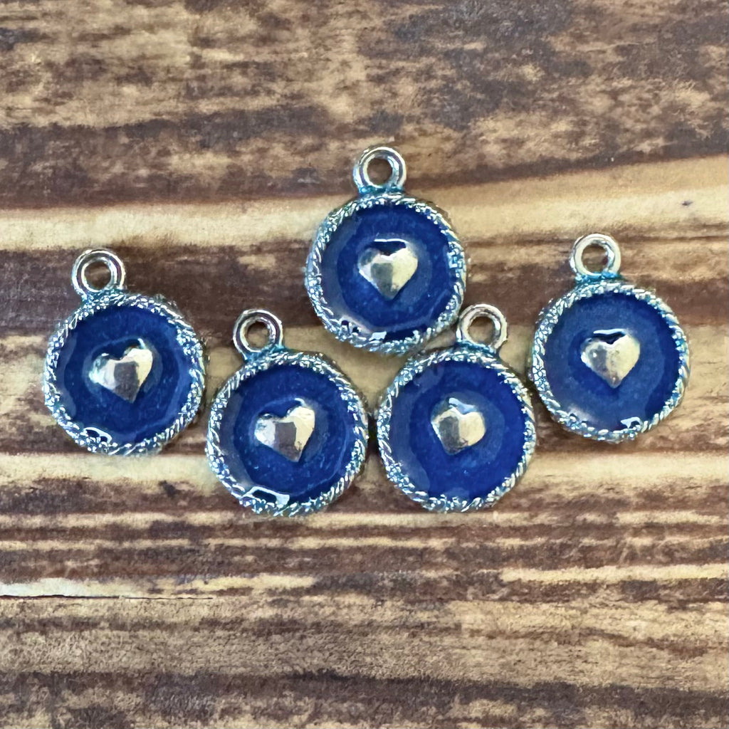 BCB-1564 - Antique Silver Enamel Charms With Heart, Navy, 12x15mm | Pkg 5
