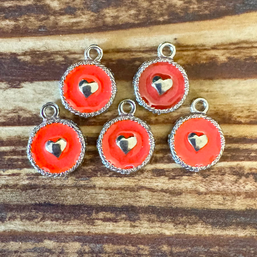 BCB-1565 - Antique Silver Enamel Charms With Heart, Red, 12x15mm | Pkg 5