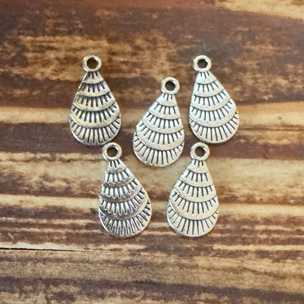 BCB-1581 - Antique Silver Fanned Shell Charms, 11x19mm | Pkg 5