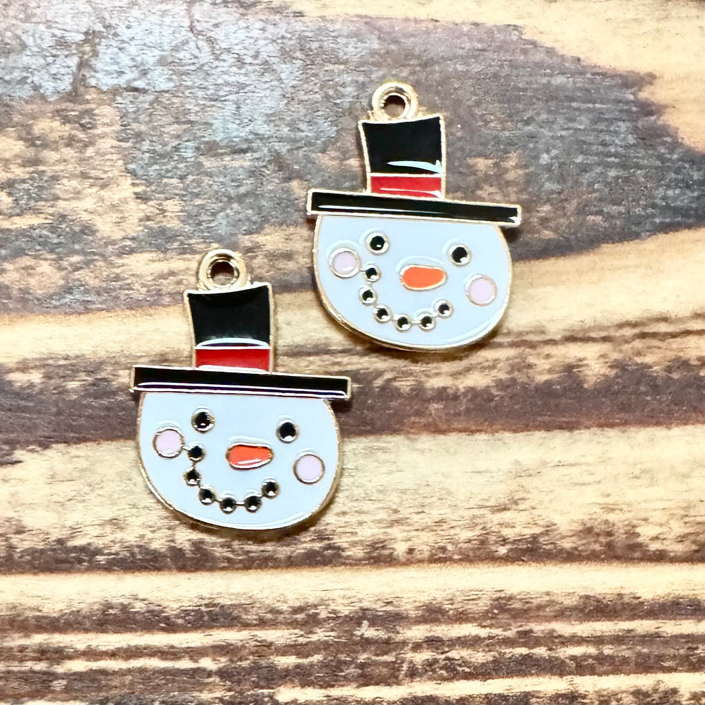 BCB-1279 - Gold Plated Enamel Pendant, Snowman With Top Hat, 16x21mm | Pkg 2