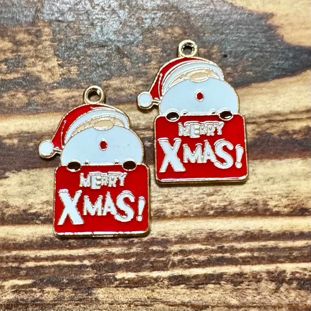 BCB-1172 - Gold Enamel Santa, Merry XMas, 19x26mm | Pkg 2