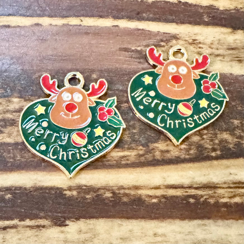 BCB-1175 - Gold Enamel Merry Christmas Heart With Rudolph, 22mm | Pkg 2