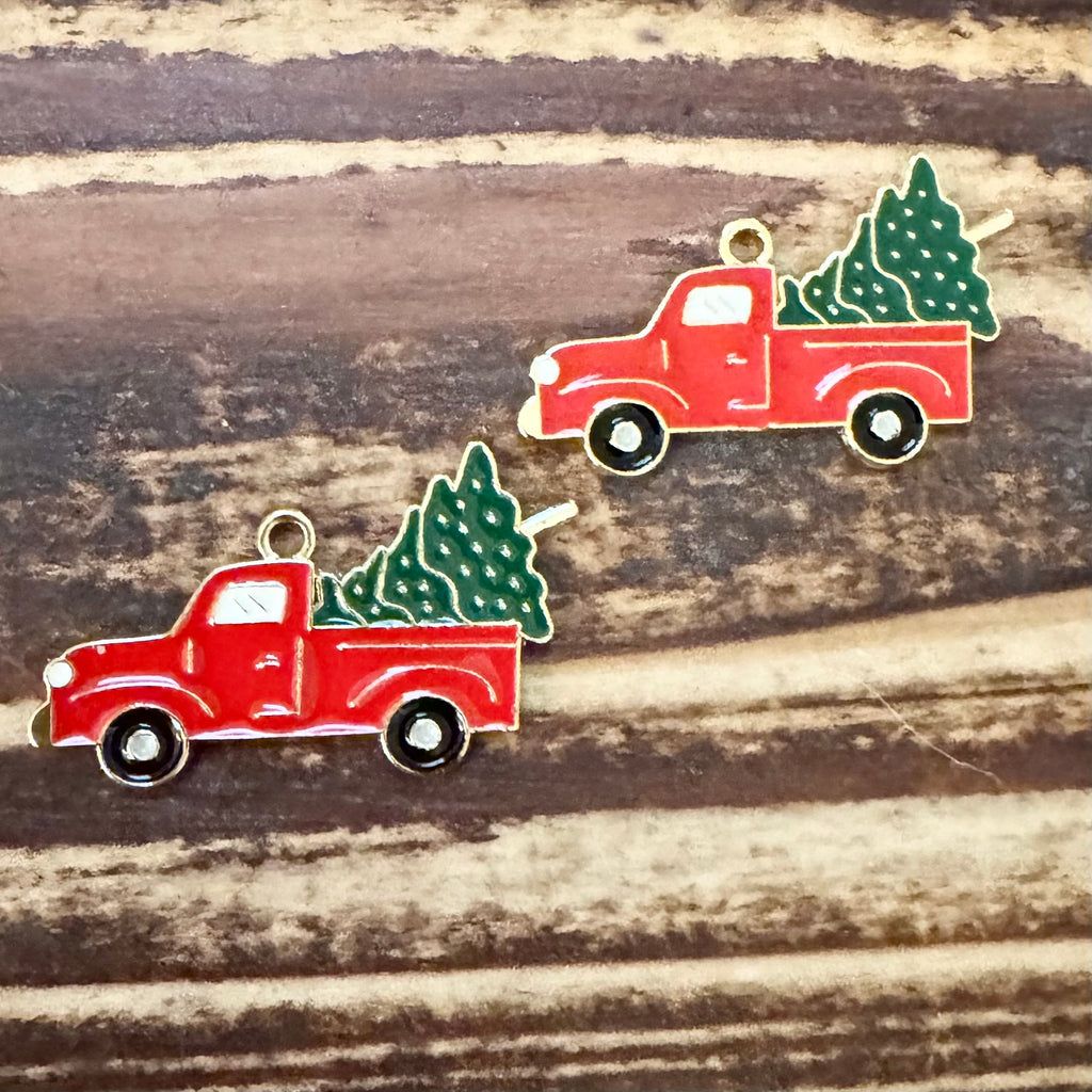 BCB-1176 - Gold Enamel Red Pickup With Christmas Tree, 21x35mm | Pkg 2