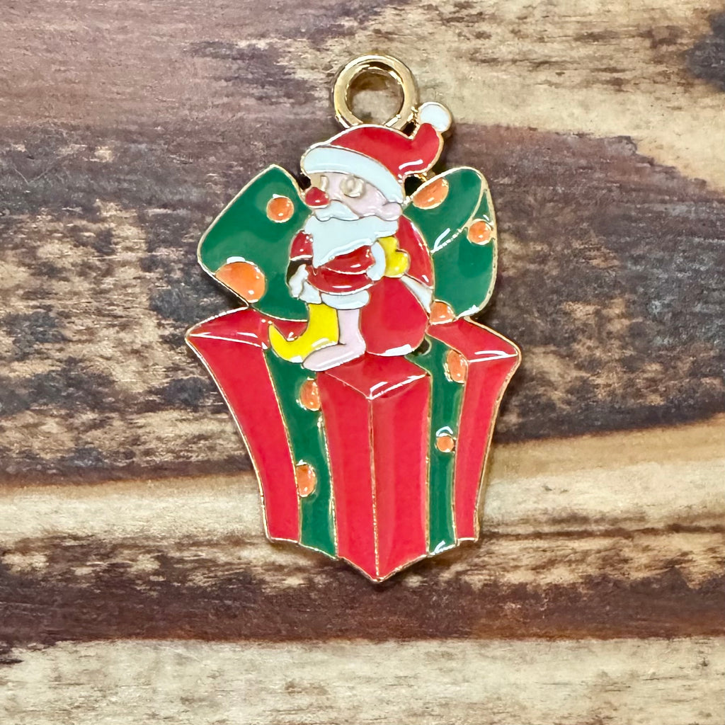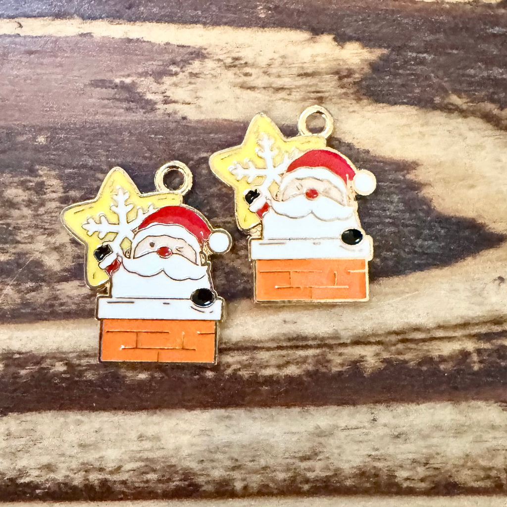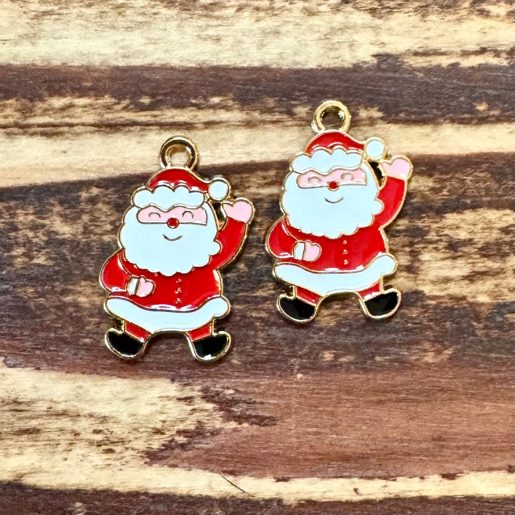 BCB-1277 - Gold Plated Enamel Pendant, Waving Santa, 15x22mm | Pkg 2