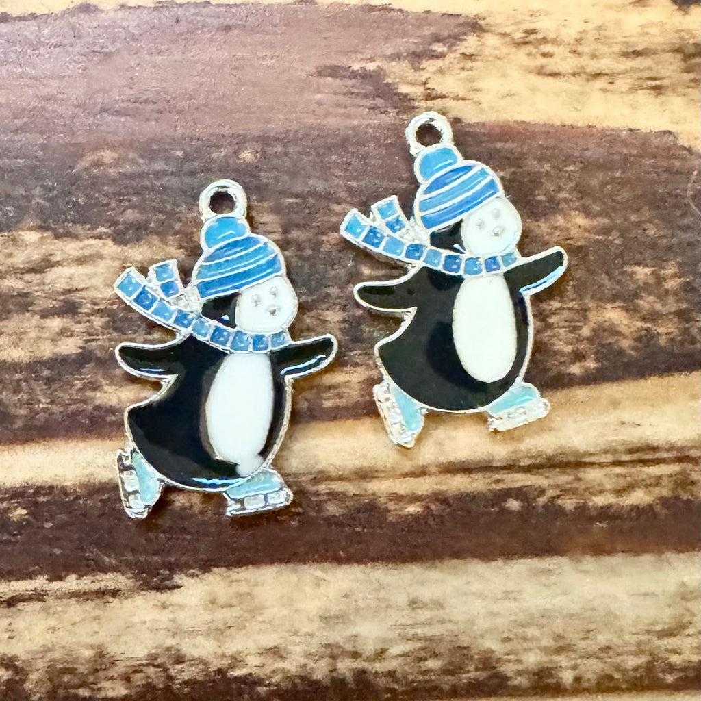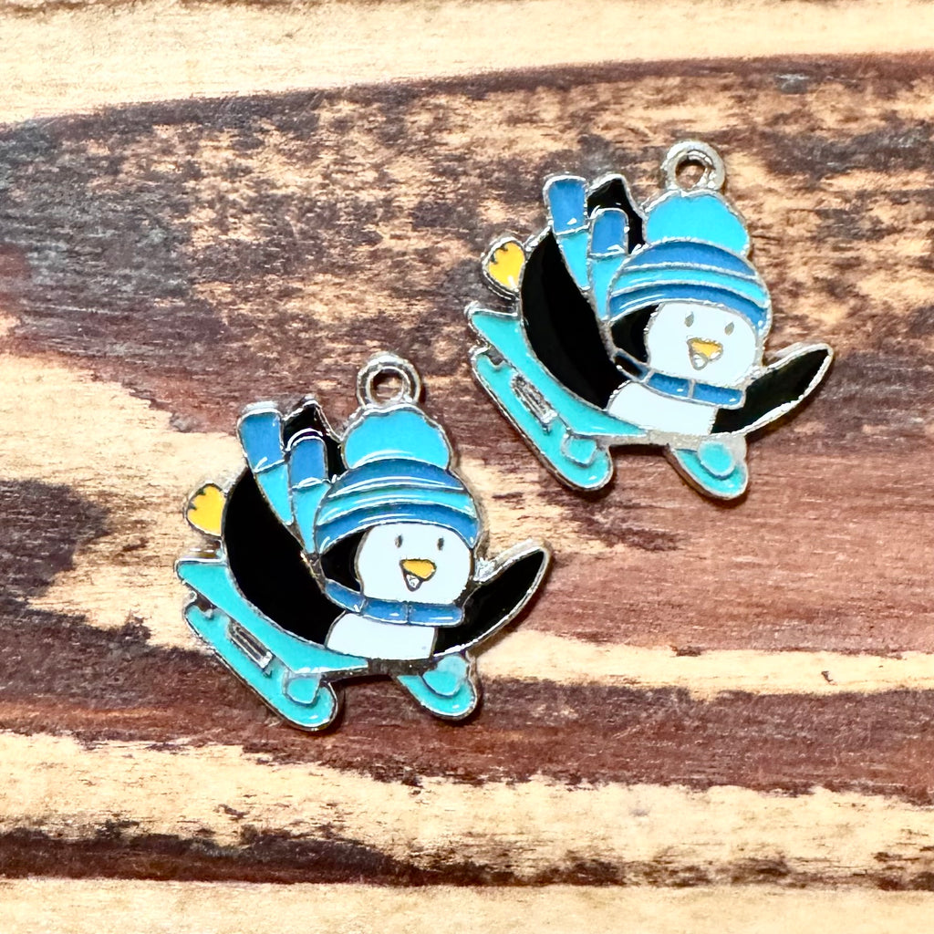 BCB-1178 - Silver Enamel Pendant, Ice Skating Penguin, 17x24mm | Pkg 2