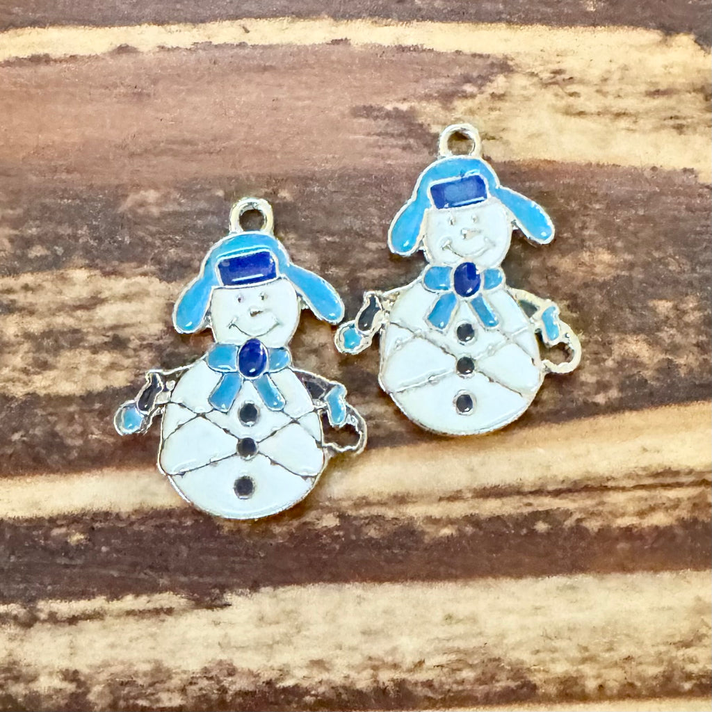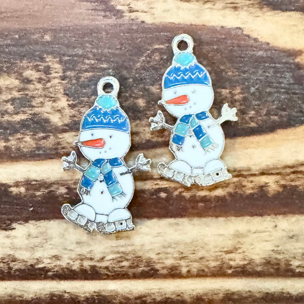 BCB-1179 - Silver Enamel Pendant, Snowman With Snow Shoes, 13x25mm | Pkg 2