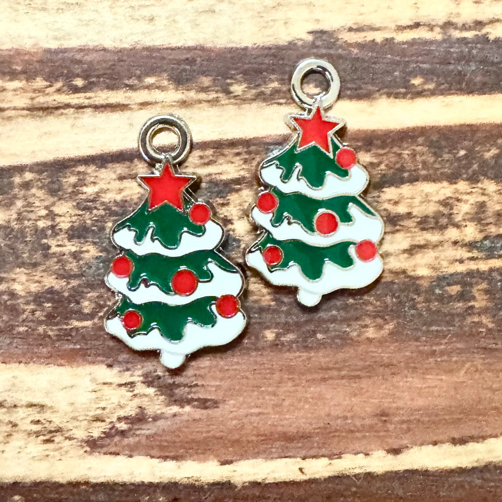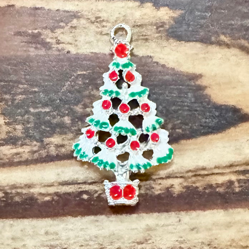 BCB-1203 - Silver Enamel Pendant, Christmas Tree, Red Balls and Star, 24x14mm | Pkg 2