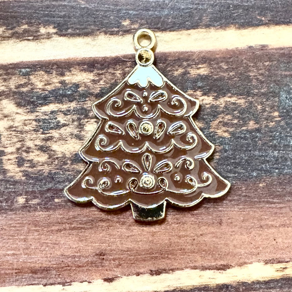 BCB-1198 - Gold Enamel Pendant, Christmas Tree With Red Star, 21x11mm | Pkg 2